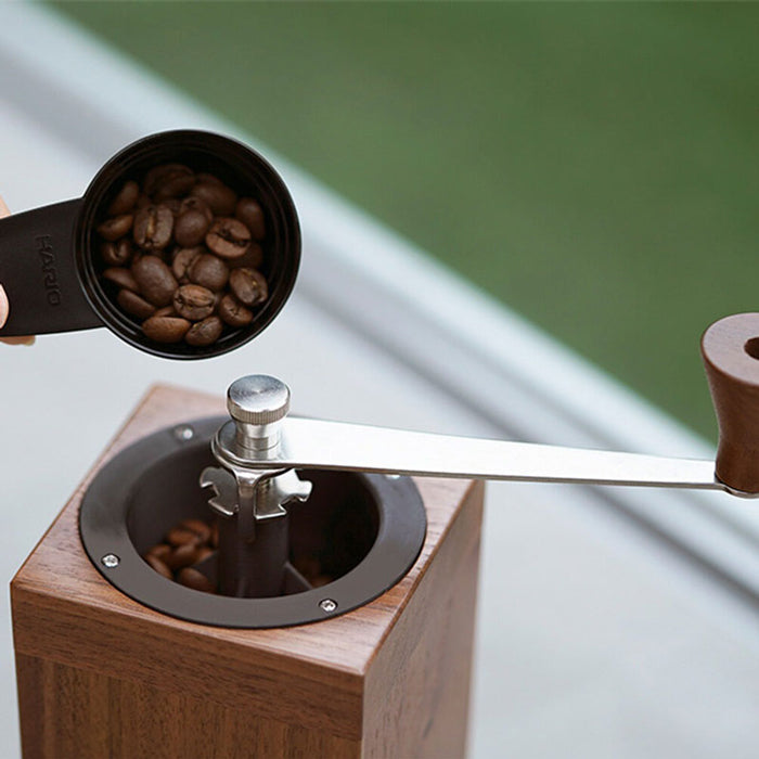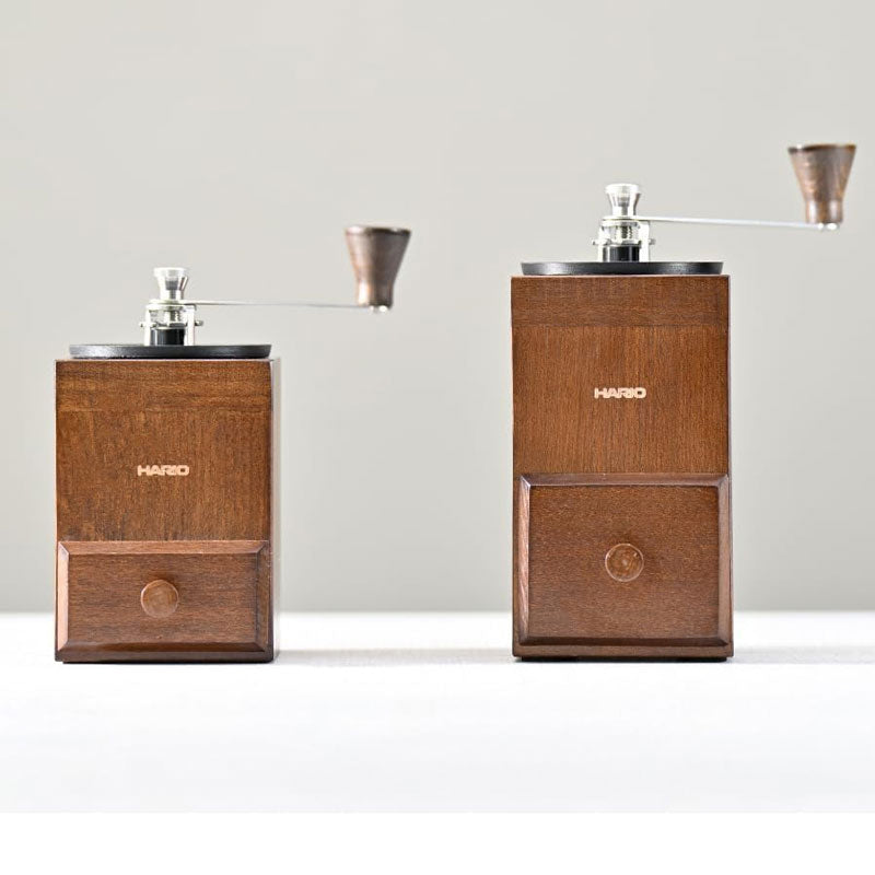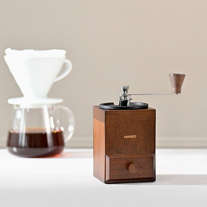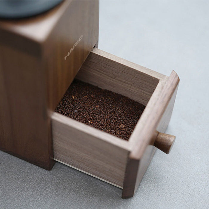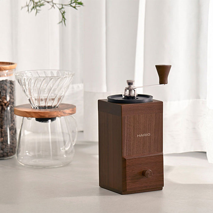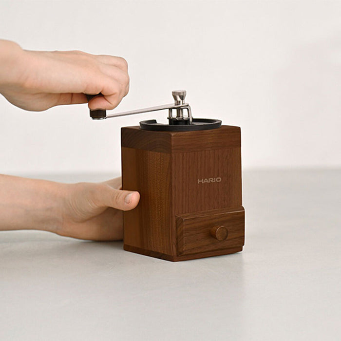 HARIO 木暮系列手搖磨豆機,方形木質底座設計,研磨時不易滑動,手感紮實好掌握。