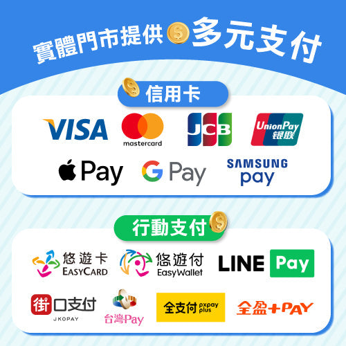 我們接受多種付款方式,包括信用卡、ATM轉帳、行動支付(如Apple Pay、Line Pay),讓您的購物更加便利。